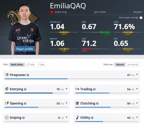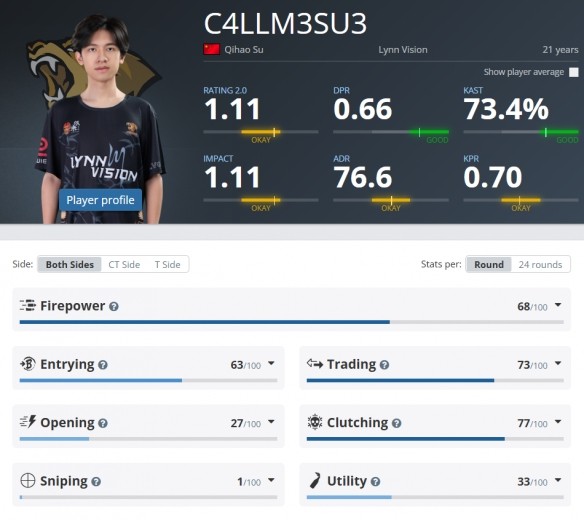 曾效力北美Wildcard战队,以冷静枪法和残局处理能力闻名,2025年助LVG晋级Major并爆冷击败世界强队Falcons,坚信中国战队被国际低估,呼吁增加Major参赛名额。