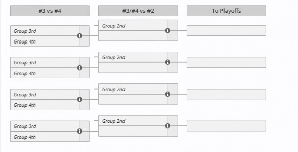 1、首先组内的第三名和第四名进行比赛,败者直接淘汰,胜者和组内第二进行比赛。