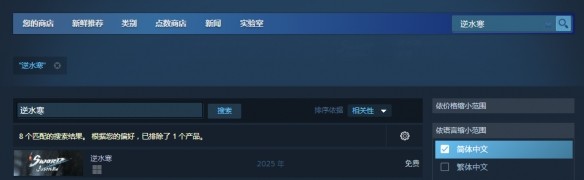 以上就是逆水寒steam名字介绍,它不锁国区,大家用中英文名都可以搜到。