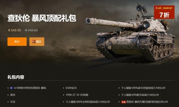 以上就是小编为玩家们带来的坦克世界查狄伦 暴风价格介绍,更多相关内容请继续关注!