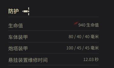 车体装甲:80 / 40 / 40 毫米